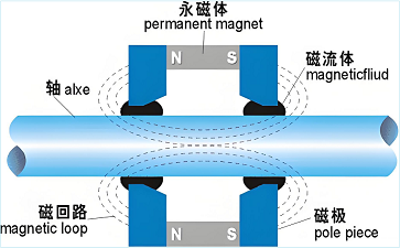 磁力密封的原理是通过磁场作用在转轴与极靴间隙中注入含有纳米铁磁颗粒的胶态磁流体,形成动态“液态O型密封环”,利用磁力对抗压差实现无机械接触的密封,由外磁转子、内磁转子、隔离套和轴承系统组成,其核心优势在于: